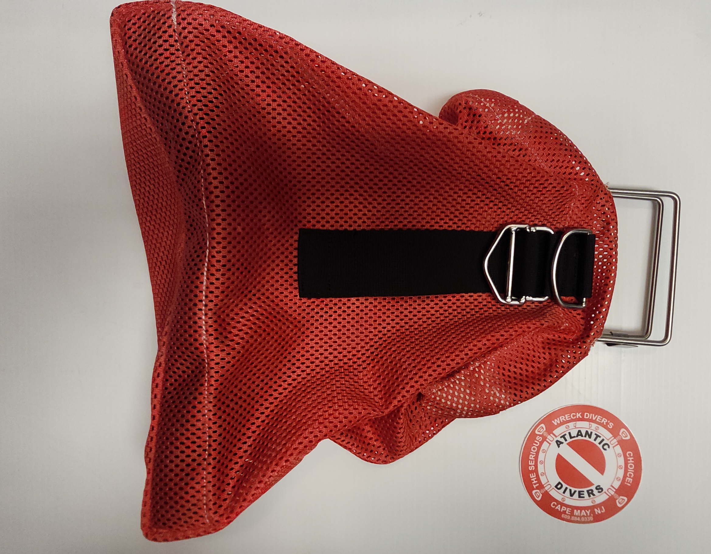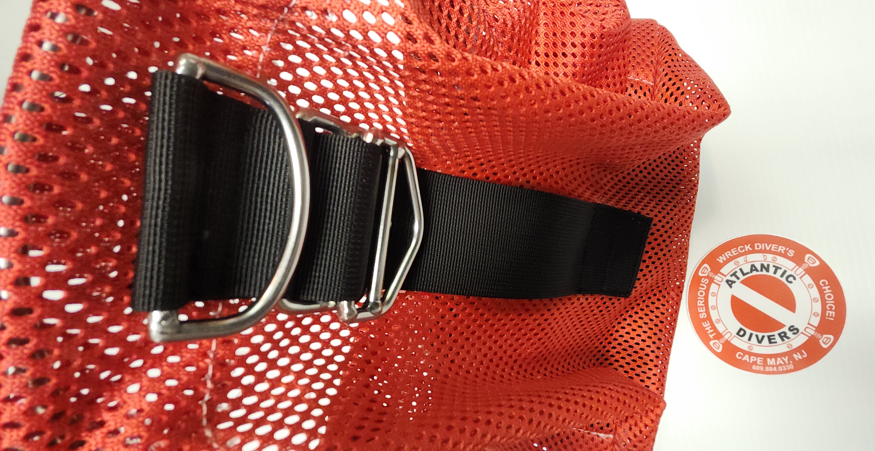 Heavy duty reinforced mesh work bag with double reinforced bottom, stainless d-rings and pocket. This bag is perfect for carrying other bags, lights, safety gear, tools or for collecting bottles, sharks teeth or shells.